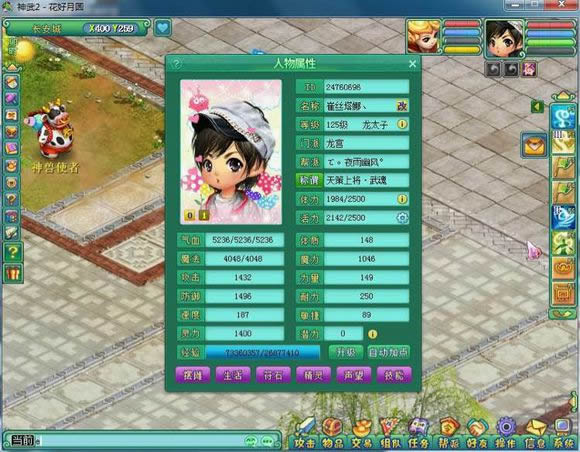 神武2花好月圆125龙宫个人展示,装备五件聚灵套,宝宝变异半成品,2000值不值?