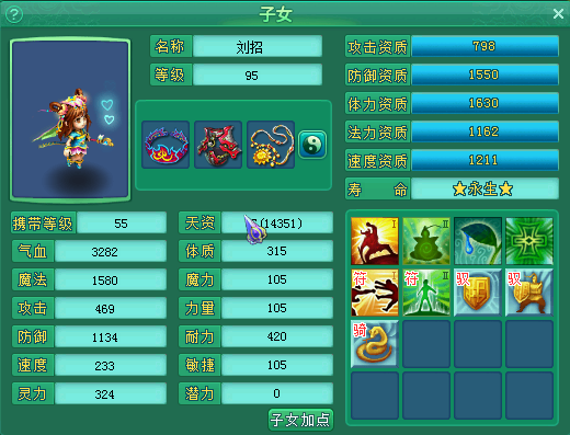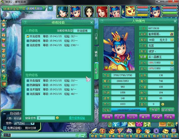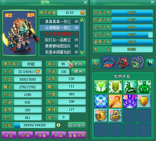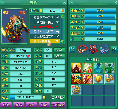 神武2盖世90级龙宫展示:装备YCZ宝宝BY五技能