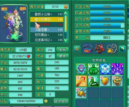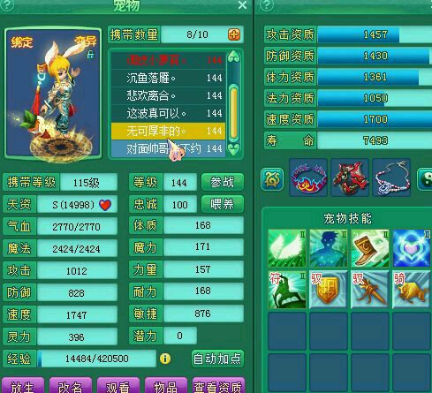 神武2沉鱼落雁139级魔王展示,宝宝全部变异高书成品。