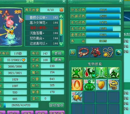 神武2沉鱼落雁139魔王展示:宝宝全部变异成品