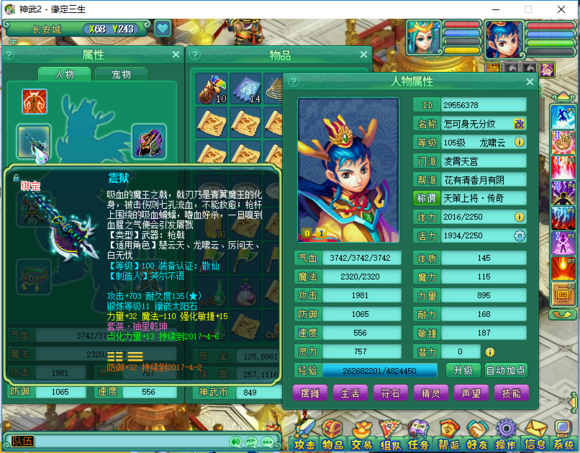 相关资讯: 神武2缘定三生双号展示,105天宫、105龙宫,珍兽+宝宝变异。