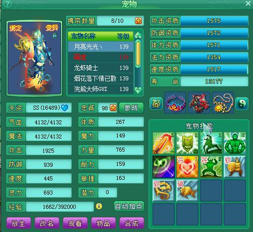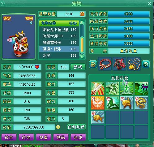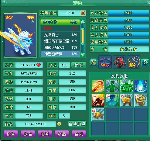 神武2尊主宝宝展示:神兽+全变异五技能高书