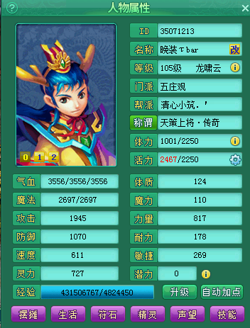 神武2英雄本色三个号展示,105级TM、FC、WZ,官职传奇,无卦象无符无卡属性,宝宝变异高书,装备特技易成长。