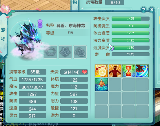 神武2百舸争流109狮驼,这样的属性,进生存被鄙视了;有玩家表示,拿99级来说,单纯主力副敏 烈一点的一线应该是2000、600;顶尖的2030、600吧?正常来说一线1980、590就够了,按照打140的符来算。 如果要升级的话,109盟主阶段,一线狮驼属性2250,1700,450(变卡)速度抢不过wz的,变身套没用,套装5逆鳞是最好的,90-109,狮驼都很难受,需要人保护,刷分比较慢;