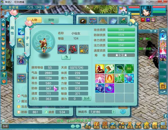神武2任剑逍遥99天宫:二线属性+双人坐骑