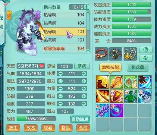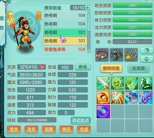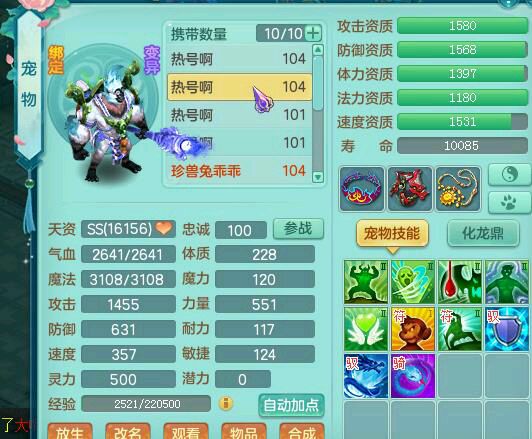 神武2法爆武器变异宠:99级龙宫日常属性(/16)