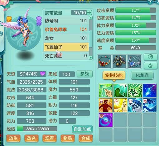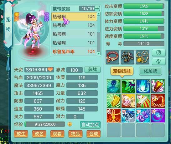神武2法爆武器,宝宝全部变异,孩子已成品,珍兽小肥羊,99 级龙宫日常属性....