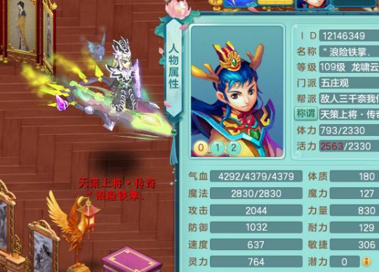 神武2阳春白雪109级力五庄,精灵出了群法,人物符石也5附加了,装备有