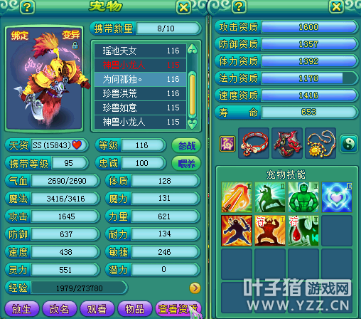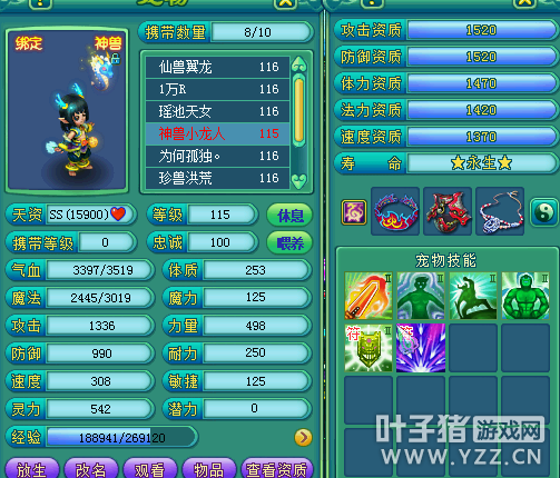 神壕的宠物大军,仙神珍样样齐,除了这3只外其他全部变异五技能,果然不是一个档次的。。。