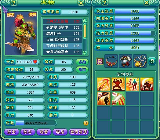 阳春白雪100五庄宠物展示,3只死骑全部变异,舍身剑气高连齐全,幸福啊!