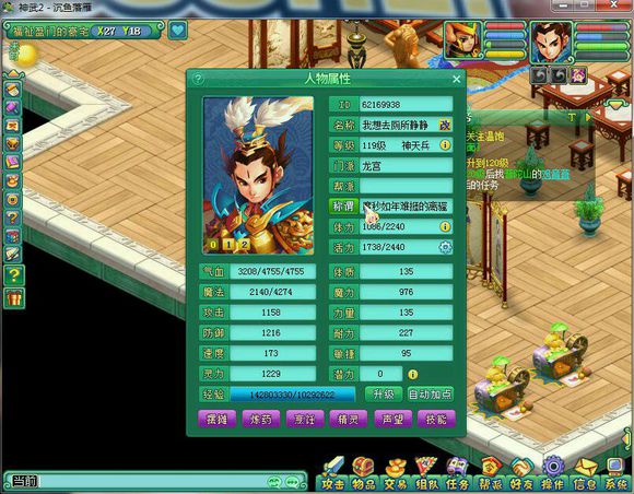 神武2沉鱼落雁119级龙宫展示,宝宝变异全高书,满修精灵已出卦象已掉,上手即玩。