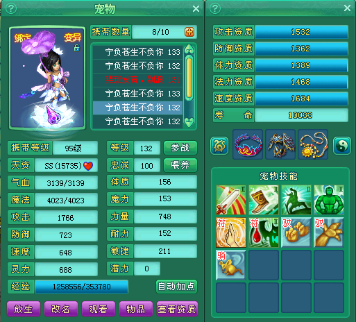 天下无双128飞升方寸展示:神兽+变异宝宝