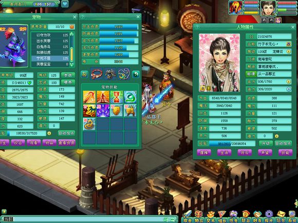 神武2潇湘夜雨120级普陀展示,珍兽加上宝宝变异高书。