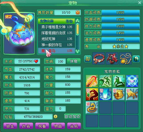 《神武3》物理宠物加点标准(140-149级)