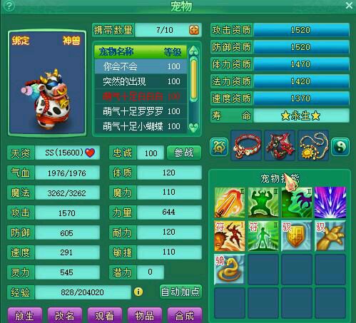 神武2飞升129盘丝展示:满特技宝宝变异成品