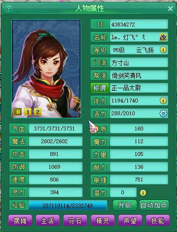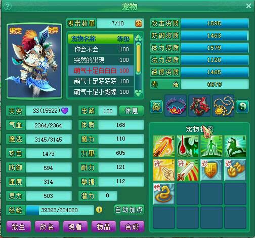 神武2战无不胜95级方寸宝宝展示,神兽加上高书宝宝,属性也不差。