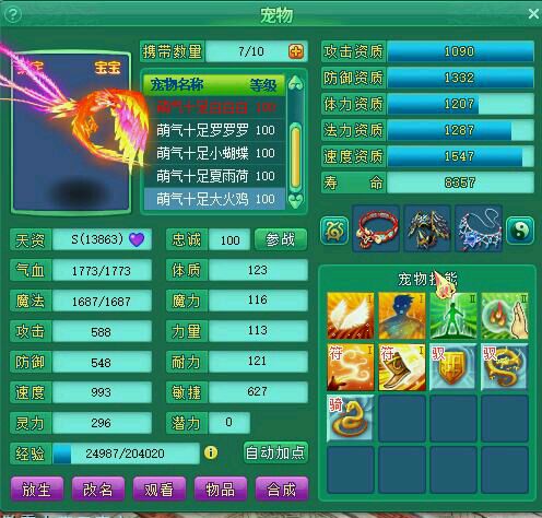 - 神武2飞升129盘丝展示:满特技宝宝变异成品