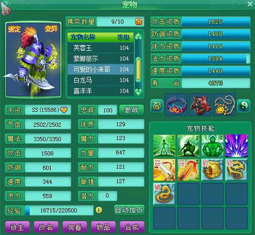 沉鱼落雁99级龙宫展示:五技能宝宝齐全