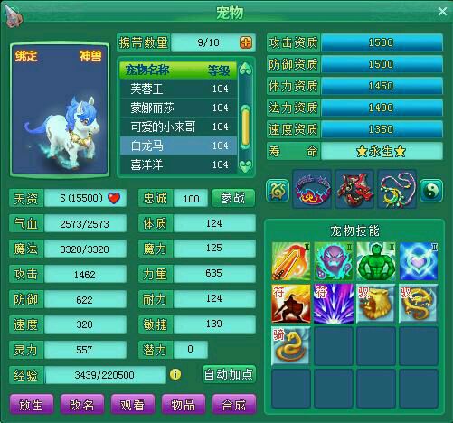 沉鱼落雁99级龙宫展示:五技能宝宝齐全