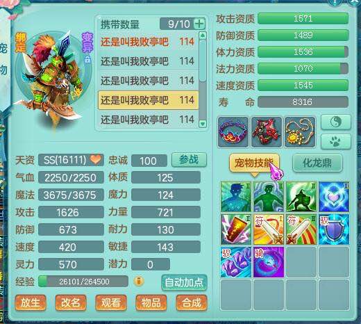 第1页:神武2蓬莱109天策展示:五附加宝宝五技能变异