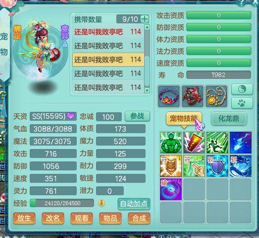 神武2蓬莱109天策展示:五附加宝宝五技能变异