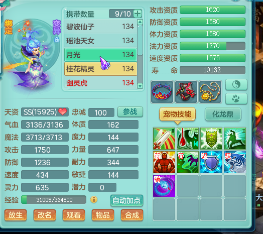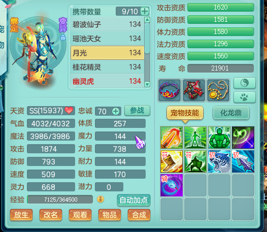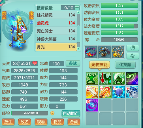 神武2歌舞升平129级天宫展示,神兽加上宝宝种类齐全高书成品,易成长装备。