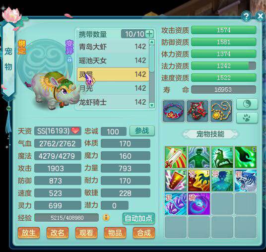 神武2剑荡九州137五庄展示:全变异高书宝宝