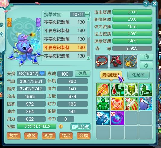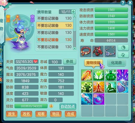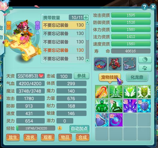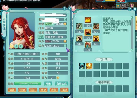 神武2风云再起飞升125魔王展示,1423灵力,1317防御,宝宝全部变异高书成品,。