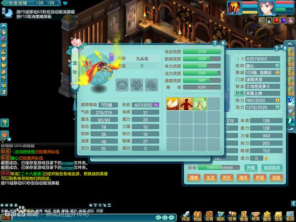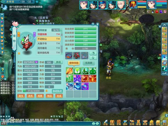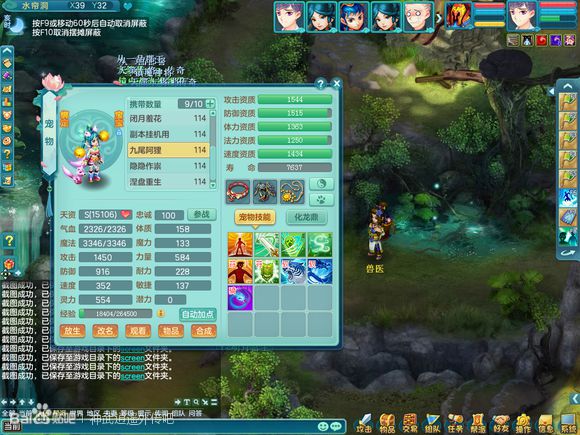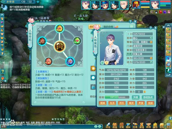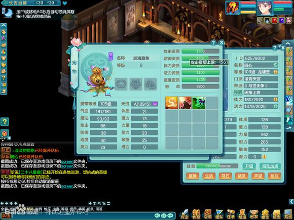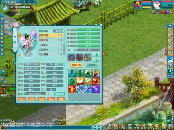 神武2天下无双109级天宫,日常属性,宝宝种类齐全,马上就要升官啦,符石三附加可找回速度属性。