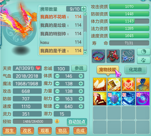 神武2九天揽月109龙宫:五定心五附加宝宝成