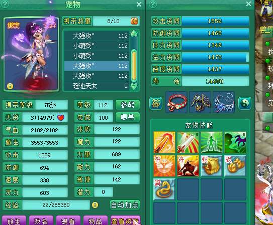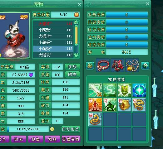 神武2四海升平107力五庄展示,装备必杀易成长3件蛟龙套,珍兽、宝宝全变异。