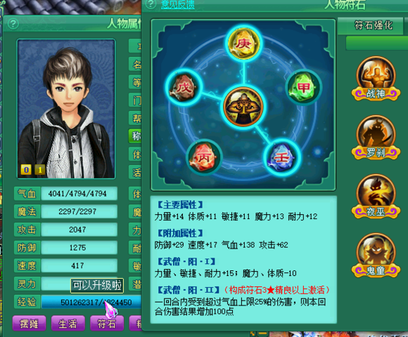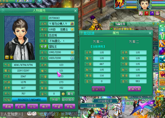 神武2真正的人品帝出现啦,2012区105力五庄满身的易成长装备,必杀、愤怒、晶清、起死、破血、技能一个接一个,就问你羡慕不羡慕,当然这位玩家的初衷是问问各位大手子,第二套属性怎么加点。
