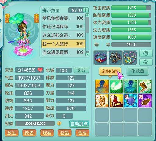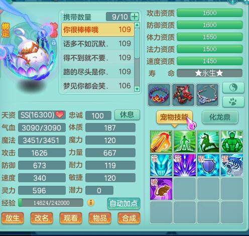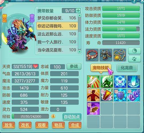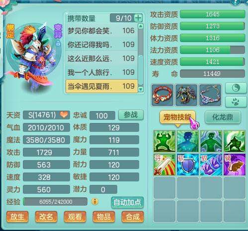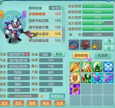 画龙109级天宫:二线属性装备宝宝齐全