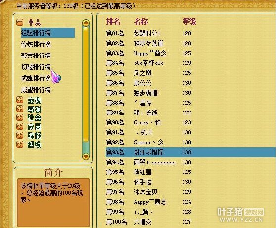 然后看看狮驼,这是卧虎第一个升130的狮驼,排在30名,至于什么时候升的 ,隐约记得是今年年初吧。 这是卧虎区的第二个飞升狮驼,上届服战结束才飞升的 。