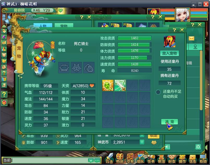 《神武3》里面的宝宝是有不同等级携带要求的,携带等级越高的宝宝资质和技能就会越好,而随着玩家级别的升高,原有的携带等级低宠物无论是资质还是成长可能都无法满足进一步的需求,这个时候就需要玩家根据自己的等级及实际需要进行更高级宝宝的洗宠。 洗宠不仅可以将宠物重置为0级宝宝,并且重新生成资质和技能,还有几率洗出更多技能资质更高的变异宝宝。 洗宠方法: 洗宠必备的物品就是还童丹,在包裹页面右键点击还童丹,于弹出来的页面选择自己需要洗的宠物(野生宠或BB均可),把然后根据宠物不同等级消耗不同数量的还童丹,携带等级越高所需还童丹数量越多,洗出变异后继续洗的话需消耗双倍还童丹,如95级携带宠物死亡骑士,洗一次需要35丹,而变异的话需要70丹。 还童丹获得方法: 1)日常活动、副本、挖图都可以直接获得。 2)有些活动可以通过积分换取还童丹,如钓鱼、大闹天宫、生存大挑战等活动。 3)每周限购还童丹礼包,原价165金币内含55丹,限购只需要50金币,建议每周购买,就算目前用不上,也可以买了存起来留着洗更高级宝宝用,要知道洗高级宝宝耗费的丹是相当多的。 注意事项: 1)最好是每周五维护后用系统发的两张洗宠券洗,这样不仅能够节省一半的丹,而且容易洗出资质比较好的宝宝,运气爆棚出爆资质的变异也说不定哦。 2)最好在有宠物祝福的时候洗,可以增加爆资质的几率。 那么洗到什么样子才算是可以呢?首先要看资质上限,因为上限越高代表资质越好,因为资质条可以靠炼化满上去,所以资质条越长宝宝的潜力就越高。然后要看成长,红心>紫心>橙心>蓝心>绿心,红色当然是最好的,成长越高宝宝加完属性点后面板数值就越高。再后面就是要看技能了,格子越多越好,所能打的书就越多,但一般宝宝都是满技能4个格子。 要洗出来算得上出色的宝宝,还要数变异宝宝了,它与普通宝宝的区别就是有几率比普通宝宝多一个技能格子,并且资质上限会超越普通宝宝,拿65J龙女来说,变异红心的前提下,洗出来5JN,有的宝宝攻资防资速资甚至能达到1600左右,这就是相当出色的宝宝了。但是洗出如此极品的宝宝还是要看几率的,可遇而不可求。 资质炼化教程 很多宝宝洗出来之后资质没有达到该条的上限,这个时候就需要通过炼化资质的方法使得资质接近或达到资质上限,从而达到提高宝宝资质和各项属性的目的。 炼化方法: 1)必备物品:肥料或宠物炼化丹、炼化符 2)炼化条件:主宠≥40J,肥料(等级≥30J的宝宝),同时肥料所需要被炼化的那条资质需要满资质条达到资质上限。 3)步骤:右键点击包裹内的炼化符,在弹出来的页面选择主宠和副宠 然后选择使用的炼化F数量,在下方选择需要炼化的资质,一次只能选择一种,然后进行炼化。 材料获取: 1)肥料:建议平常洗出来不太好的但是满资质条的宝宝留着作为肥料,因为影响炼化后主宠属性的条件是肥料的资质条盈满程度。就是说肥料的资质比主宠低但是资质条比主宠满,主宠的资质在炼化后也会有明显增长。肥料的获取方式有限时领养、挖山水时放出的宝宝、抓野后用还童丹洗等。 2)宠物炼化丹:在AL国坐标(72,22)的行脚商人处点珍稀宝物可以进行购买,每天限购20颗,单价3000神武币。 3)炼化符:可以通过挖图获得。 注意事项: 1)炼化符每次建议使用1张,但如果F多或者资质条快满的时候可以用三张,但整体不如1张性价比高。 2)想快速练肥料,建议每周3+1(山庄)次灵虚,每次带5个肥料进去,基本一周最少能练10个肥料。再者有时间的可以去带大秒卡修正,练肥料也是比较快。 了解更多相关信息,请前往http://sw.yzz.cn/ [编辑:叶子猪小秘书]