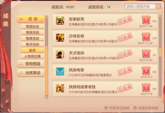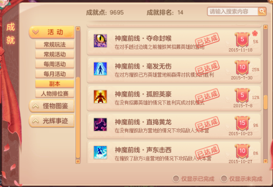 100本神魔前线成就大体上可以分为对抗成就和非对抗成就,我们先来讲重头戏,对抗成就。