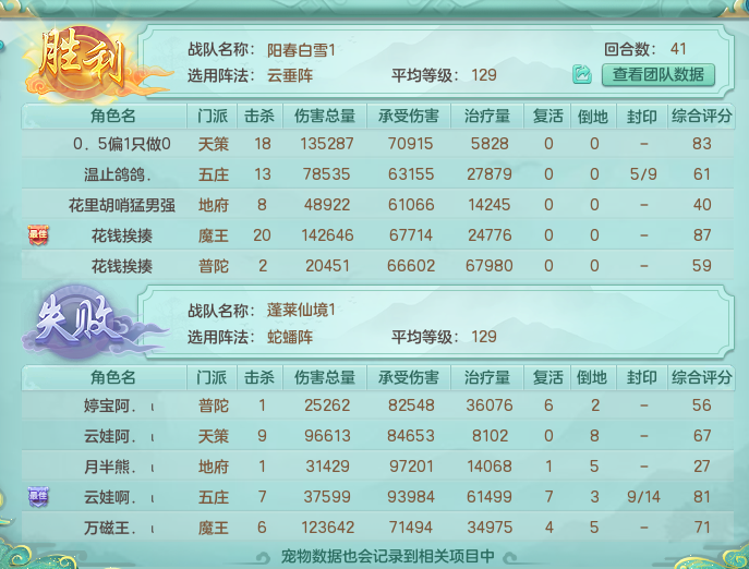 《神武4》决赛是阳春白雪1队云垂阵对战蓬莱仙境1队蛇蟠阵,阳春白雪1队克制5%。从双方镜像的三辅助阵容就可以看出,这是一场极具观感的消耗战。 直到第11回合蓬莱仙境1队的天策阵亡,且在后续回合中始终无法将天策状态抬起,才让场上平衡的形式出现了崩盘的迹象。最终阳春白雪1队凭借天策的高质量清宠,将蓬莱仙境1队的宠物消耗殆尽,赢下了这场对局。 双方阵容分析 阵法: 阳春白雪1队云垂阵小克蓬莱仙境1队蛇蟠阵,伤害增加5%。 配置: 阳春白雪1队:五庄+地府+普陀+天策+魔王(观战方) 蓬莱仙境1队:五庄+地府+普陀+天策+魔王(对战方) 变身卡: 观战方: 五庄、地府、普陀选择灵墨·变异/画魂·变异,拥有高级再生、速度+20的效果; 天策选择神兽小龙人,拥有高级驱鬼、防御-5%的效果; 魔王选择蝴蝶精灵·变异,拥有高级法术波动效果。 对战方: 五庄、普陀选择灵墨·变异,拥有高级再生、速度+20的效果; 地府选择神兽时光叽,拥有高级飞行、灵力+20的效果; 天策选择贪狼·变异,拥有审判、速度+20的效果; 魔王选择蝴蝶精灵·变异,拥有高级法术波动效果。 小欣点评 双方辅助大都选择了提高续航的高级再生卡,观战方天策选择高级驱鬼针对场上的鬼魂单位,对战方天策选择审判克制神佑单位。 首发宠物选择: 观战方:4高连1青霜 对战方:4剑气1青霜 小欣点评 双方都带了1个青霜提高清宠效率;对战方选择搭配4剑气提高面伤;观战方选择搭配4高连,高额血量应对剑气的同时稳定清1个宠物。 精彩瞬间 第3回合,对战方预判观战方普陀会打出“莲心琉璃”保护天魔孩子,地府释放“阴魂不散”将状态驱散,配合其他输出单位成功将天魔孩子清掉。 小欣点评 子女因其强力的技能,一直都是优先级最高的清宠目标。当场上只存在1个子女时,如何保护或者破保护都至关重要。 第10回合,观战方天策“以守为攻”高速出手将对方天策击倒,对战方天策触发神佑后又被观战方五庄释放的“逆转阴阳”命中,无法获得“天降甘霖”的恢复,并在次回合被魔王击杀。自此,对战方开始陷入劣势。 小欣点评 天策的技能大多都有气血要求,所以观战方意通过“以守为攻”去压制对方天策血线,限制其出手。 “逆转阴阳”可以将目标受到的加血随机转移给敌方单位且自身不恢复气血,影响目标的状态恢复。 第21回合,观战方预判对方天策被保护,五庄“御烟破”高速出手破保护,随后天策开启星爆打出“以守为攻”成功击杀对方天策并使其进入“断魂”状态。 小欣点评 天策的“以守为攻”可以实现高速点杀,但只有一段的伤害极容易被保护破解,封五庄的“御烟破”可以在天策出手前触发保护、缥缈符等干扰,确保天策可以高质量出手。但要注意调整好五庄和天策的速度哦~ 赛后小结 1)观战方在比赛开局后,一直利用天策高驱鬼卡平稳清宠,直到第11回合将对方天策击杀,才打破了僵局。在后续回合中,对战方天策的血线始终没有恢复,无法对观战方前排宠物造成威胁。而观战方天策状态优秀,频频使用“穿云斩”套装清宠扩大优势,最终赢得了比赛胜利。 2)对战方在前期还能与观战方进行清宠博弈,但在第11回合天策阵亡后,状况急转直下。后续回合中天策多次倒地,濒死的状态使其无法打出应有的作用和伤害,导致场面失衡。魔王在30回合打出一换三的“涅槃重生”也无法挽回颓势,最终惜败对手。 欢迎在下方留言讨论,了解更多幻唐志的相关内容请关注 叶子猪幻唐志专区。 [编辑:ssc]