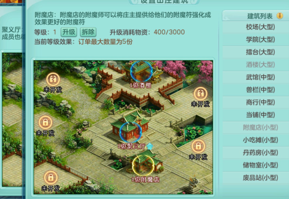 一、前言 山庄系统是PVE系统里重要的一个版块,同时也衍生出PVP的一些后勤玩法。 本期内容从山庄的建立,再到山庄运营,最后脱手逍遥自在,手把手教你怎么操作。 二、名词解释: 三、创建山庄&加入山庄 拥有自己的山庄有两种方式。 创建山庄 第一种是创建山庄,去到临仙镇(83.91),找到公公,如下: 这个时候你的山庄是空的 接着咋们来做点事情,把山庄壮大起来。 先去到聚义厅,找到门客统领。 看看自己的山庄的鸟瞰图 Ou~空空如也 随便点击一个加号,咋们开始建建筑了,全部建造满,具体要建造什么建筑呢?我门看下一章节。 加入山庄 第二种方式是加入好友的山庄,这个需要好友邀请,操作如下: 先来到山庄的聚义厅 点击山庄总管,并选择权限管理 没有邀请好友对不对? 因为你不是庄主啊,哈哈哈!我们来看看庄主的界面: 点击设置副庄主: 邀请的条件是对方等级大于等于90级,双方友好大于等于1000。 注意:自己的号可以进一个山庄,不是自己的号不建议在一个山庄,除非你们关系真的很好。 进入山庄之后的操作和自己创建山庄是一模一样的,只不过你的权限是被大庄主控制的,你能花的钱也是有限。 如果你的每一个号都要靠山庄赚钱,那建议**山庄,每个号一个山庄,因为有些设施是共用的,一个号用满了,另一个号就用不了。 四、创建功能建筑 山庄建筑列表(功能详解) 校场 这玩意设置一个门客,你之后在战斗中使用技能的时候ALT+W,就可以选择召唤门客的技能了。 老版本一般设置骆兵王,新版本大家也可以挖掘一下其它门客。 但是改版后有一个削弱 PVE战斗这里是不生效的。 但是那些不获得SWB的战斗这些是生效的,例如 学院 学院每天都会刷出一些特技来,你可以当物品用。 愤怒不足的时候不会消耗道具。 有愤怒了就会消耗 战斗中玩家最多可以使用10个药品格子。 小编刚喝了一个酒,用了一个特技道具,所以变成了2/10。 擂台 这个就不用说了,如果喜欢玩凌问剑活动则要建造这个,否则不用建造。 酒楼 暂时看起来用处不大,因为改版后门客可以一次性买完。 武馆 给人物刷经验的。 兽栏 给宠物刷经验的 商行 可以理解为物品换山庄物资。 当铺 可以理解为物品换信誉。 附魔店 去商会买附魔符,然后丢给附魔师,他可以提高你附魔的效果(下限提高,上限不变) 小吃摊 酒可以+1级,12级变最高13级 丹药房 提高丹药品质,最高160品,要达到160,你的胚子最好能135品以上。 储物室 以上所有建筑实现效果,都是有数量上限的,可以理解为次数上限,这个建筑就是提高上限。 或者你这么理解,提高锅的数量,提高出菜的量,同时能炒很多菜。 废品站 以上所有的建筑订单都可能失败,失败了物资就白消耗了,这个建筑是用来回收的,给你回点本钱。 这些建筑不能全部建立,需要筛选,如果选错了也没关系,可以拆了指定建筑再重新建。 PVP建筑选择 这套搭配适合PVP玩家。 核心建筑是丹药房,用来炼制160品的药,你拿140+品的丢进去,强化一下基本能150以上,甚至达到极限160。 注意160品并不是药品的极限,而是山庄炼制的极限。 我的药全部是山庄练的,但是失败率也很高,那失败了怎么办?那就要 依靠废品站了 废品站也可以用来替换小吃摊,小吃摊做的高星酒还是比较好买的,但是品质血环真难买,而且贵。 酒的品质提高,这个就要依靠小吃摊了 你去商会买12品的药,直接能给你升到上限13星,这已经是最高级别了,很给力。 与其配合的还有这个储物室 效果就不用多说了,提高订单上限和成功率的。 什么叫提高订单上限呢? 这个20就是上限,你最多只能一次练20个药,这些药都可以快速完成。 咋们从0到1演示一下: 左键点击空闲格子 将药品丢进去,然后勾选增加消耗提高成功率,不勾选也行。 操作好了之后你要么等几个小时来收货,要么点击快速完成(消耗增多),最终结果都是一样的,只是后者消耗大。 其它建筑例如学院、校场、兽栏、当铺小编简单介绍一下。 你的门客要在日常中出战就需要设置校场门客。 兽栏是来练宝宝的。 当铺是现**信誉用的。 学院是用来给你特技的,它会刷出好的特技,变成物品,你放在包裹里,可以当物品使用,PK的时候每个人只能用10个药,这个特技符会效果一个位置。 常见的用法是,你自己不带慈航,然后刷出一个慈航符,关键的时候使用。 只允许部分场合使用,上面有说明。 PVE建筑选择 山庄刚建立的时候一定要先建酒楼 用来吸引门客的,门客吸引满了就把它拆了。 如果你处在冲级的阶段可以紧接着搞武馆,用来刷经验 如果你前期现**********搞商行。去商行领任务,然后用现金去商会买物品,交给商行。 附魔店这个新手不建议搞,这个还挺不错,但是现在出了一个战队附魔我自己就没搞了,如果你在附魔这一块小号大,可以建立一个。它的作用就是让你的附魔下限变得很高,需要你去购买附魔符丢进去。 PVP玩家玩凌波问剑的比较少,PVE玩家会玩这个。这个时候可以去建一个擂台。 五、建筑升级 咋们先简单建立2个建筑:酒楼和附魔店 然后点击升级聚义厅 这个时候激活了更多场地 接着我们再建造2个新建筑 然后升级这些1级建筑到2级。等等物资不够了怎么办? 别慌,直接用信誉换物资。 如果不小心退出这个界面了怎么办?别慌,找到你的大总管,点击设置山庄建筑: 所有建筑升到2级之后,我们点击升级聚义厅 这个时候会获得一个成就。 然后老规矩,直接把剩下的空